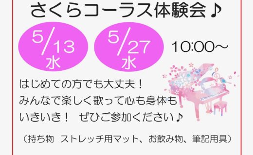 newさくらコーラス無料体験会開催!5/13 5/27...